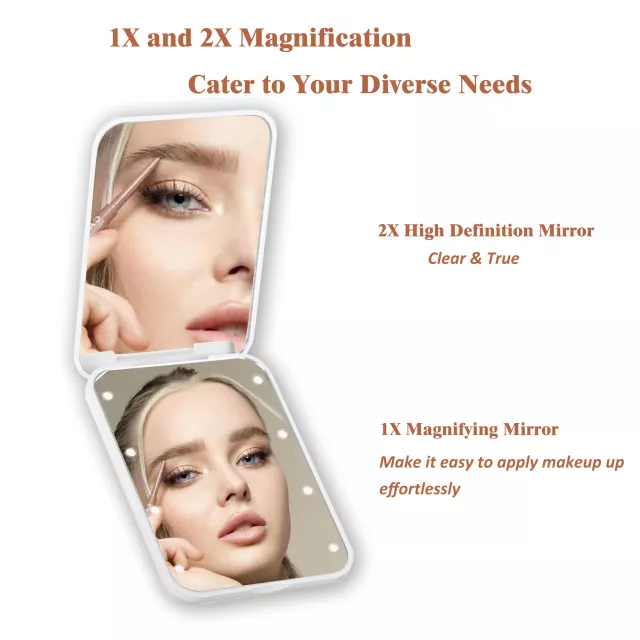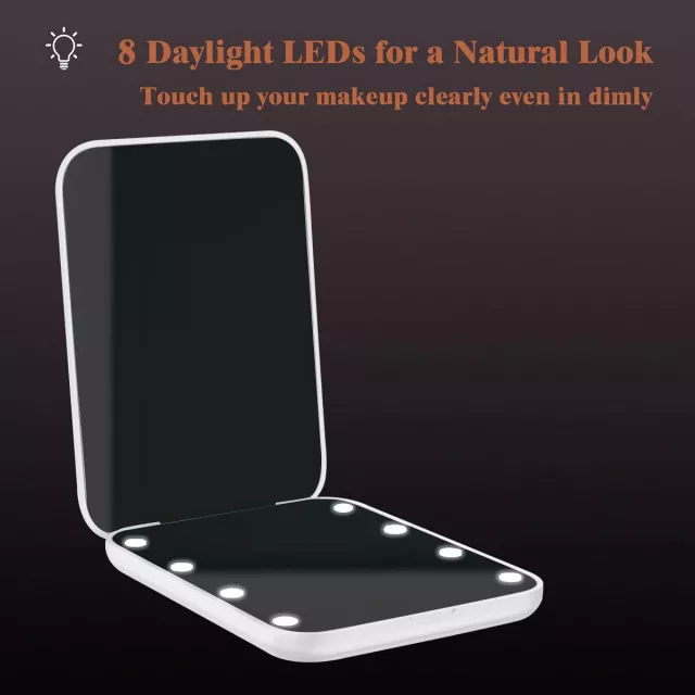 • 8 LED Light Beads: Bright, natural white light for flawless makeup in any environment.