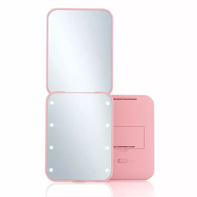 LED Folding Makeup Mirror with Lights – 2X Magnification, Pocket Size