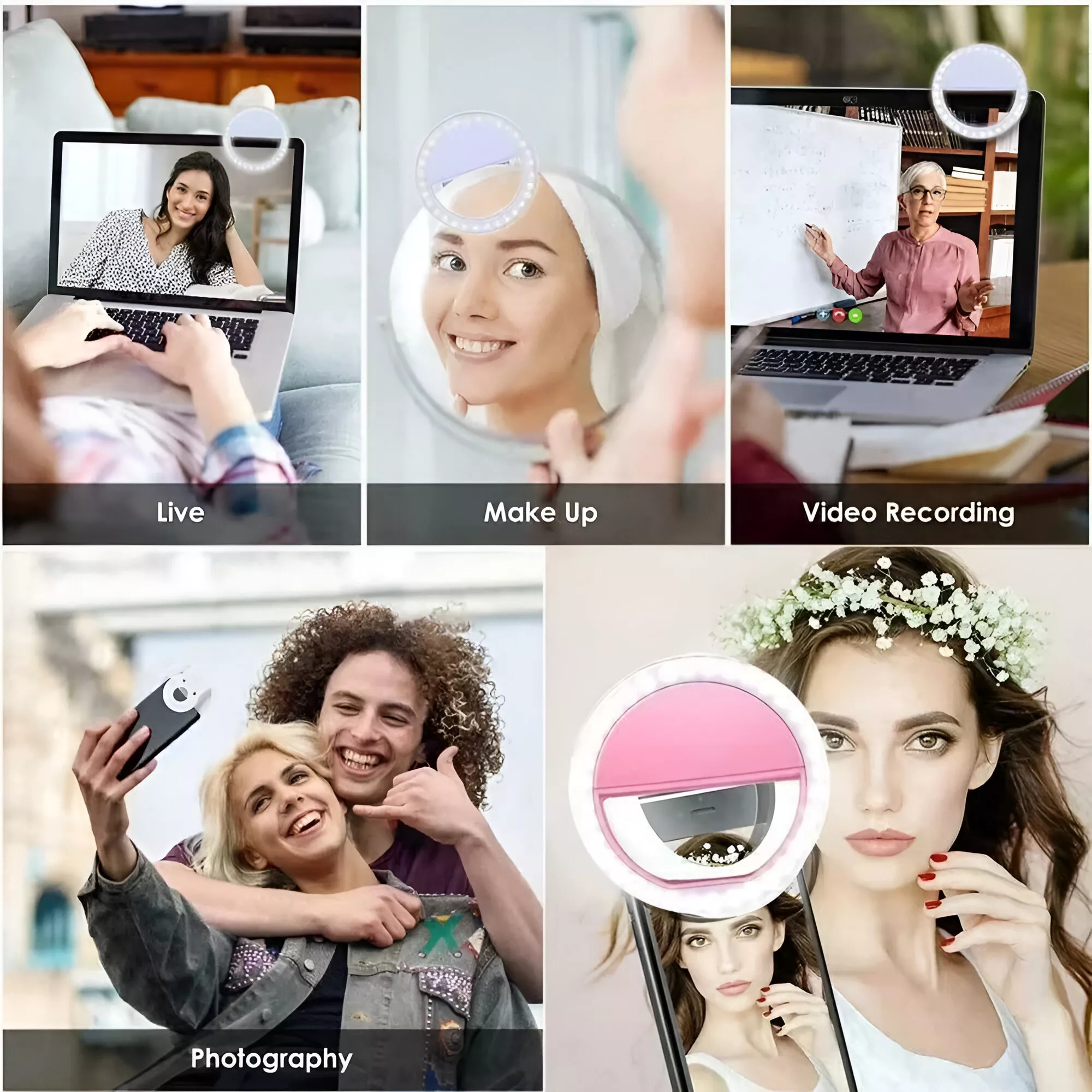 Get ready to shine in every selfie with our LED Selfie Ring Light. Designed with 36 high-quality LED beads, this compact ring light clips easily onto your phone, tablet, or laptop, giving you a flawless glow anytime, anywhere. Whether you’re capturing the perfect selfie, streaming live, or making video calls, this light enhances your natural look with soft, even illumination. Thanks to its clever diffusion mask, the light spreads smoothly, eliminating harsh shadows for a professional finish every time.