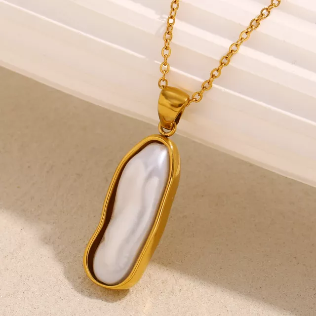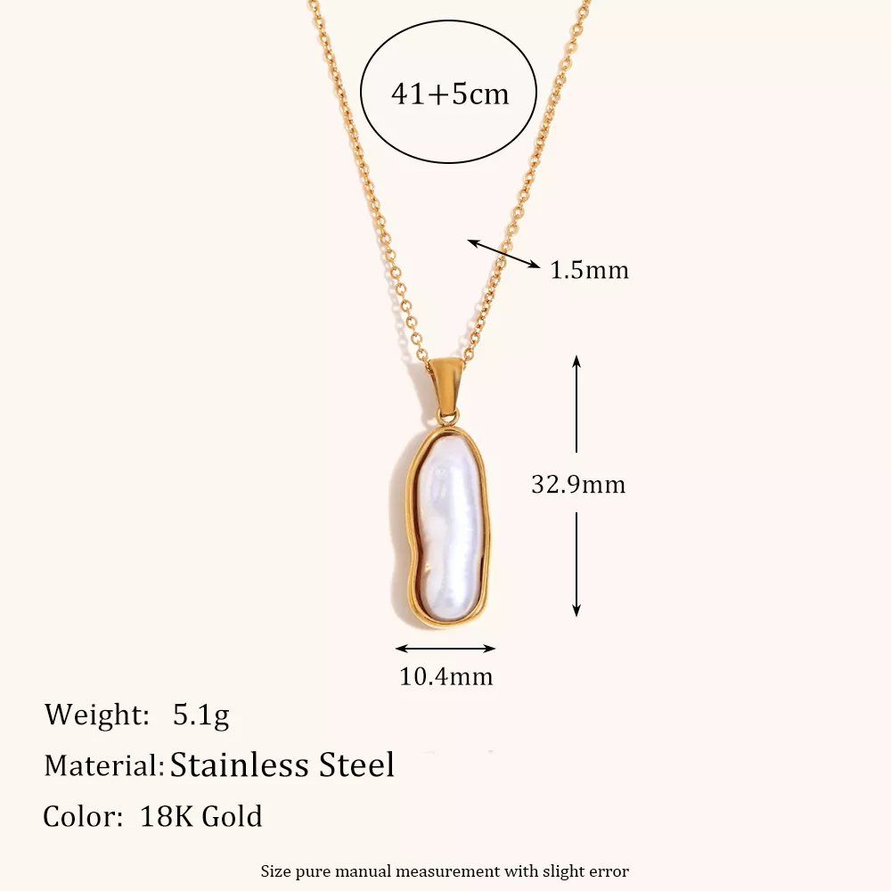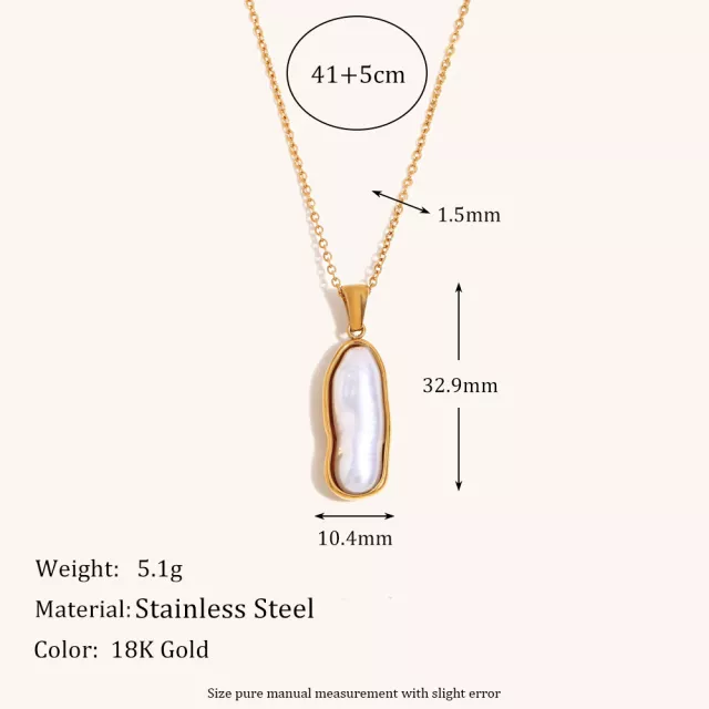 This necklace features a smooth, high-shine 18K gold-plated finish over durable 316L stainless steel, offering long-lasting wear that won’t tarnish or irritate the skin. It’s hypoallergenic and waterproof, making it ideal for daily use—even in humid or active settings. The pendant’s centerpiece, a radiant imitation pearl, adds a classic touch with a romantic twist. Measuring approximately 16.1 inches with a 2-inch extender (41 + 5 cm), it offers adjustable length for layering or solo wear. Weighing just 0.18 oz (5.1 g), it’s light, breathable, and comfortable enough for all-day wear.