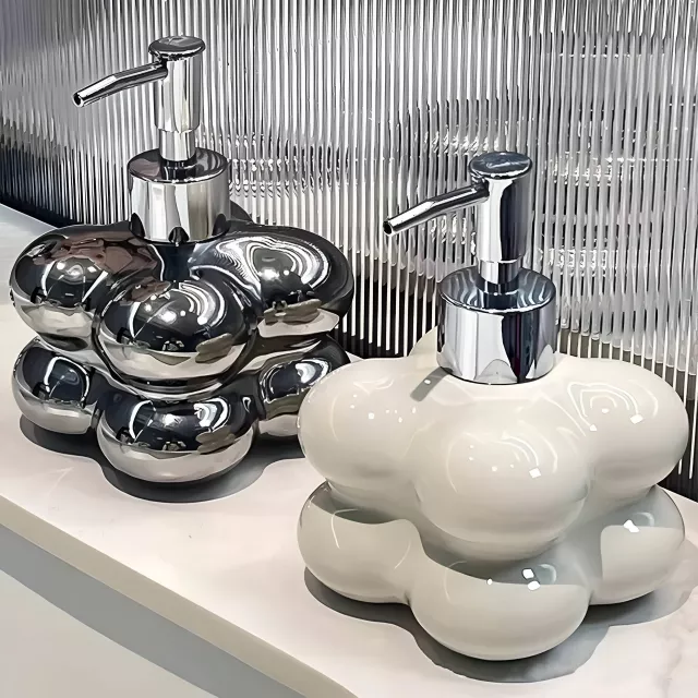 Transform your daily routine with the sophisticated charm of this Luxury Ceramic Soap Dispenser with Silver Pump. Designed for those who appreciate both function and aesthetics, this elegant dispenser adds a modern flair to any bathroom or vanity space. Its unique spherical ceramic body, paired with a lustrous silver pump, creates a stunning visual that complements both contemporary and classic interiors. Whether you’re dispensing hand soap, shampoo, lotion, or shower gel, this dispenser brings a stylish touch to your personal care rituals.