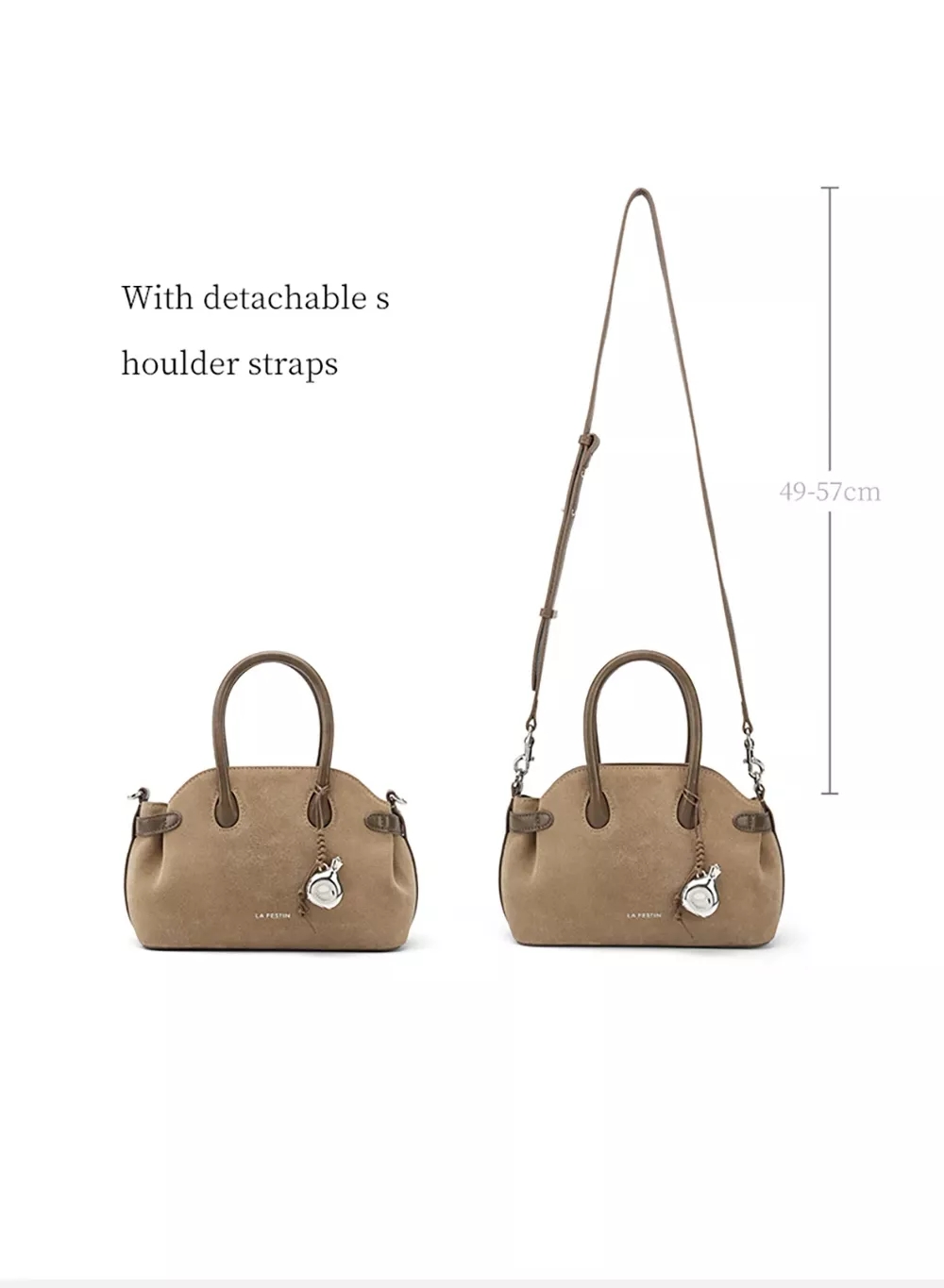 This compact yet spacious bag features a smooth suede exterior and synthetic leather lining, combining style with durability. Designed for comfort and functionality, it comes with two sturdy handles and an adjustable crossbody strap, allowing you to wear it your way. With a practical zipper closure, interior zipper pocket, and internal compartment, all your essentials stay organized and secure wherever you go.