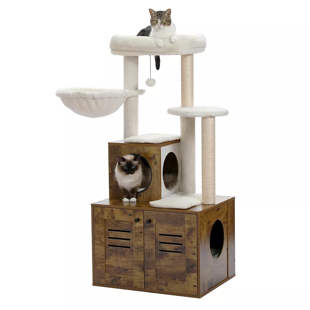 Our cat tower stands out for its multifunctionality and premium materials. The foldable litter box, included for free, makes this an unbeatable value. It’s not just a piece of furniture; it’s a comprehensive solution for your cat’s needs. Easy to assemble and designed to accommodate 2-3 cats simultaneously, it’s suitable for both single and multi-cat families. The use of healthy, environmentally friendly materials ensures your cat’s wellbeing, making it the perfect choice for conscientious pet owners.