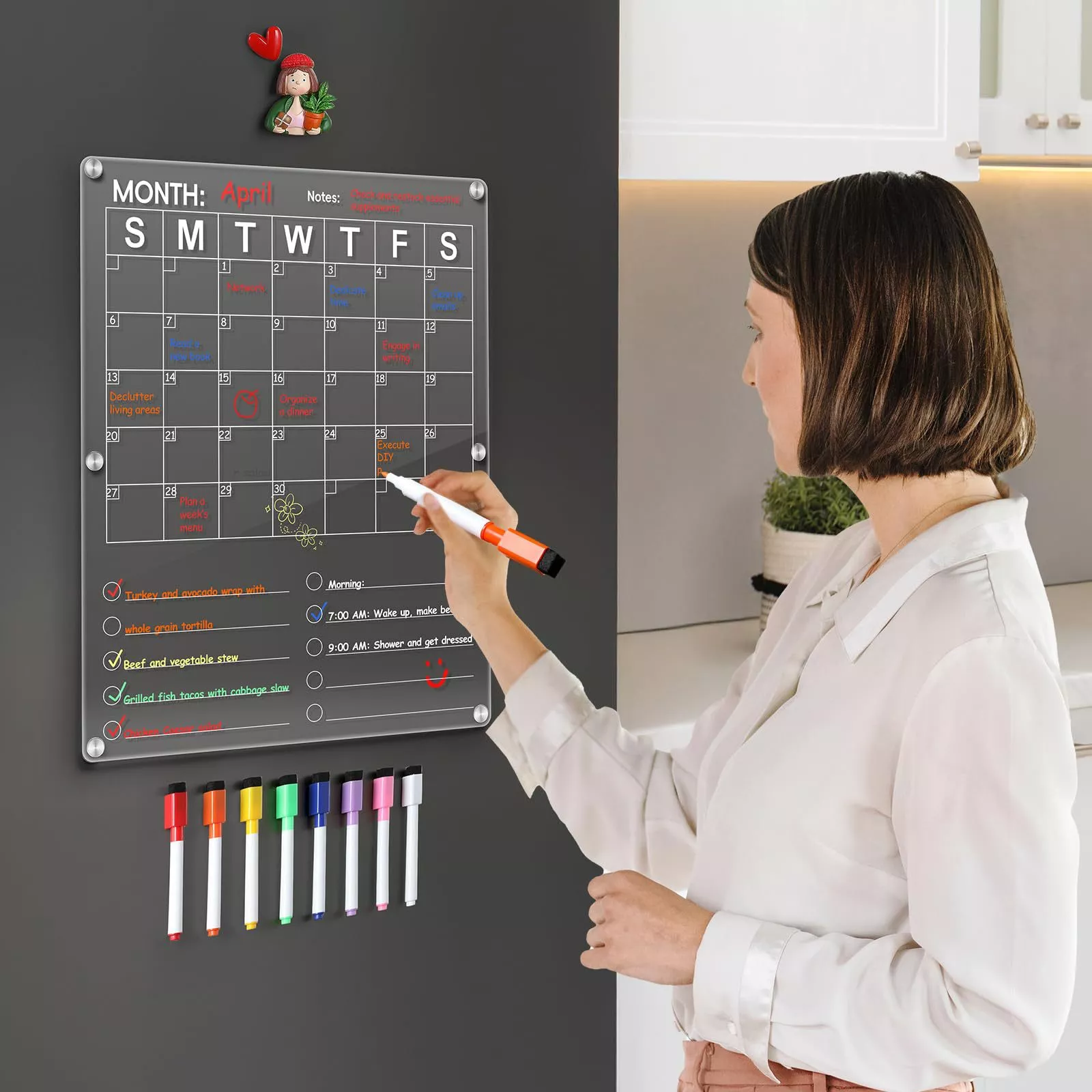 Take control of your schedule with this Magnetic Acrylic Dry Erase Calendar Board – the perfect blend of function and modern style. Designed for the busy home, office, or classroom, this see-through calendar planner adds clarity to your day while keeping your space sleek and organized. Whether you’re managing family activities, work deadlines, school reminders, or daily errands, this magnetic memo board makes it easy to visualize your month at a glance.
