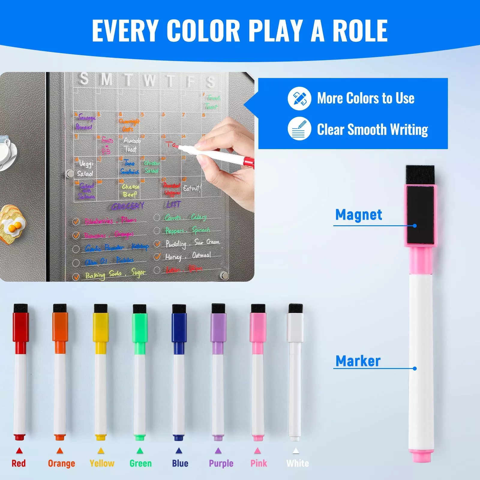 Crafted from high-quality 0.12-inch thick transparent acrylic, this board is built to last. It’s scratch-resistant, wear-resistant, and super easy to write on. The surface works seamlessly with erasable markers, and it wipes clean without ghosting or residue, even after repeated use. Its strong magnetic backing adheres securely to refrigerators, filing cabinets, whiteboards, or any metal surface—no drilling or hanging hardware required.