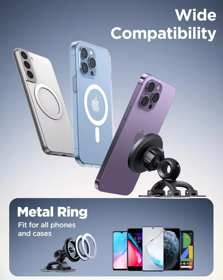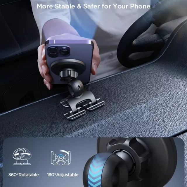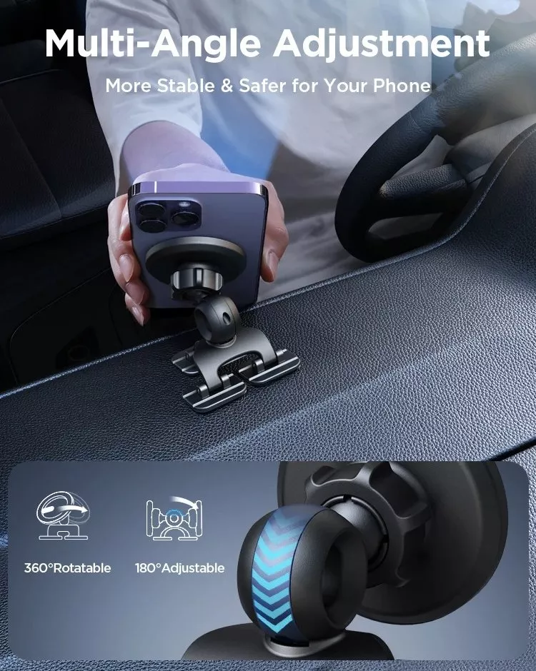 With a 360° rotatable head and 270° adjustability, you’ll get effortless control over viewing angles, helping you stay focused and comfortable behind the wheel. The advanced nano 3M adhesive delivers extreme holding power — rated to withstand over 66 lbs — and resists heat for long-lasting performance. Plus, the closed magnetic field design ensures your phone’s signal and battery are never affected.
