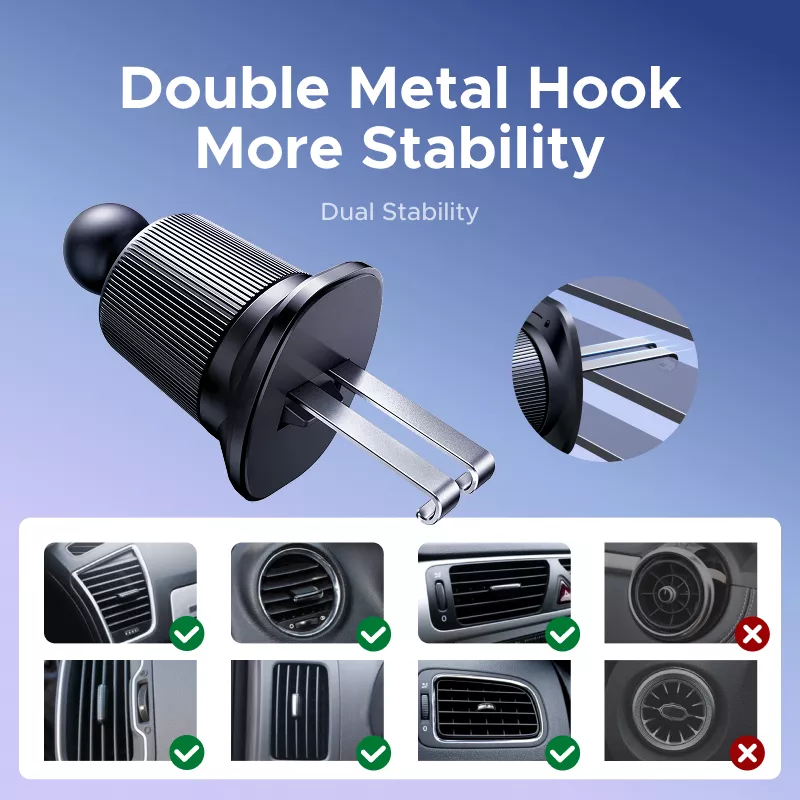 Unlike standard holders, this magnetic mount uses powerful magnets compatible with MagSafe devices and magnetic cases, delivering a strong, wobble-free hold. The simple clip-on air vent design means you can install it in seconds without tools. Its universal compatibility works with most smartphones, including iPhone, Samsung Galaxy, and Xiaomi models. The minimalist style doesn’t block your view or clutter your dashboard — perfect for those who appreciate both function and form.