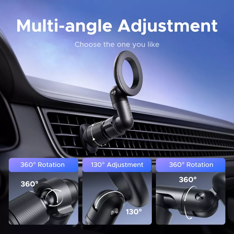 Whether you’re navigating with GPS, taking hands-free calls, or controlling your playlist, this mount is built for convenience on the go. The 360-degree rotation lets you adjust your phone exactly how you want — portrait, landscape, or any angle in between — ensuring you always have the perfect view. It’s ideal for daily commutes, road trips, and any drive where you need your phone close but safely secured.