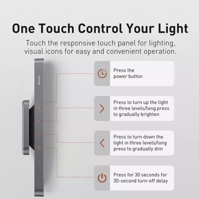 Unlike traditional desk lamps, this lamp combines smart lighting technology with minimalist elegance and true portability. With a slim build, cordless design, magnetic mounting, and fully customizable light, it fits seamlessly into any modern living space. And with stepless brightness and color control, it’s not just light—it’s personalized comfort.