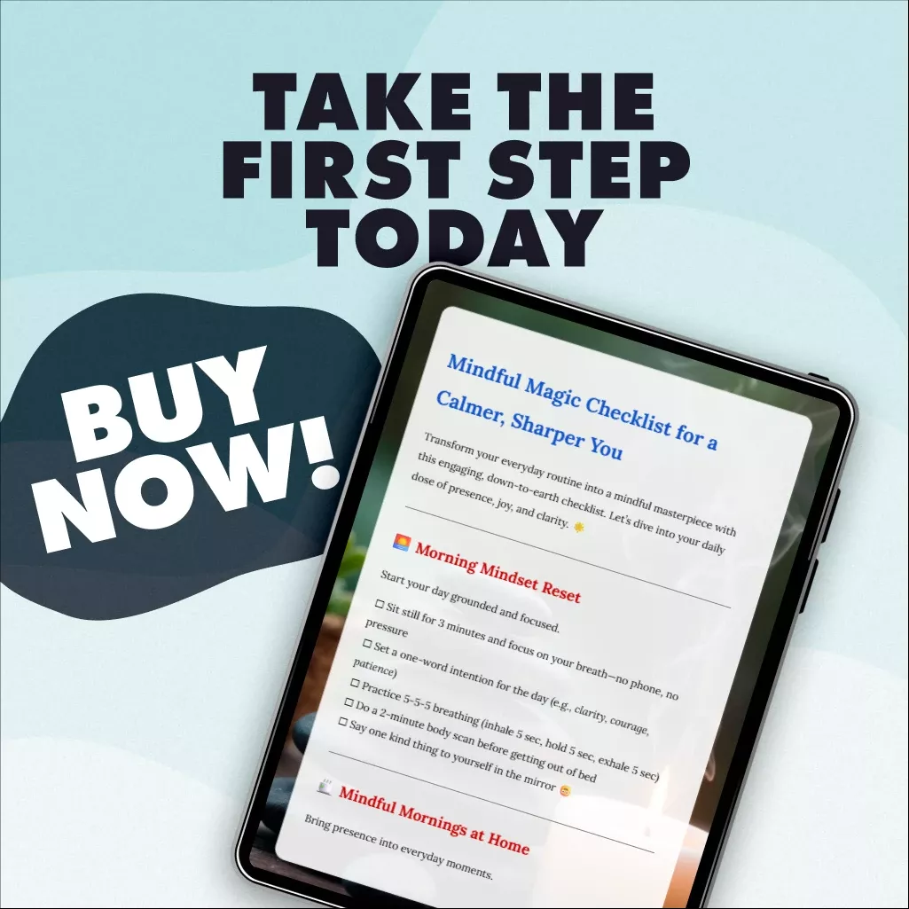 Download your Mindful Magic Checklist for a Calmer, Sharper You today and start transforming your everyday moments into mindful magic. Your calmer, sharper, more present self is just one click away.