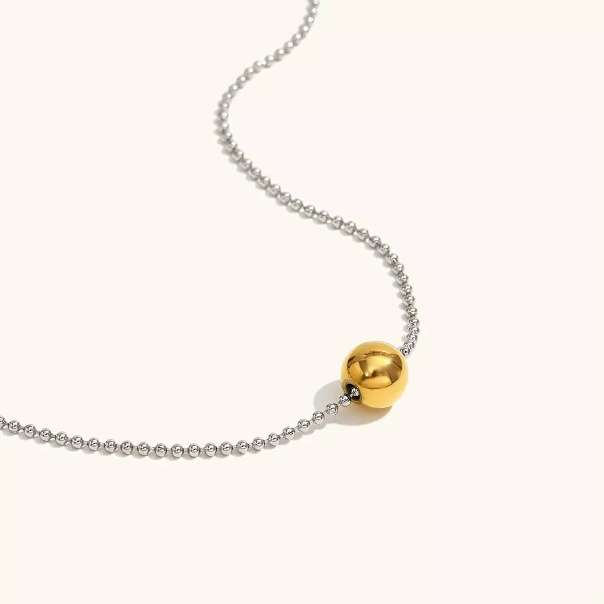 Looking for the perfect balance between subtle elegance and modern design? This Minimalist Round Bead Chain Necklace delivers just that. Designed for women who appreciate understated beauty, this necklace features a mixed-metal round bead chain that adds a gentle shimmer to any outfit. Whether you’re dressing up for a party or keeping it casual, this necklace elevates your look without overpowering it.