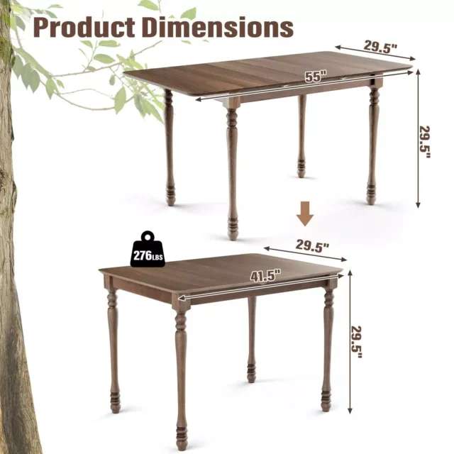 This exquisite dining table is expertly crafted from high-quality rubber wood and MDF, ensuring durability and stability. It features an extendable design, allowing you to easily adjust the size to accommodate guests or save space. The firm structure and robust 276 lbs weight capacity make it an ideal choice for everyday use.