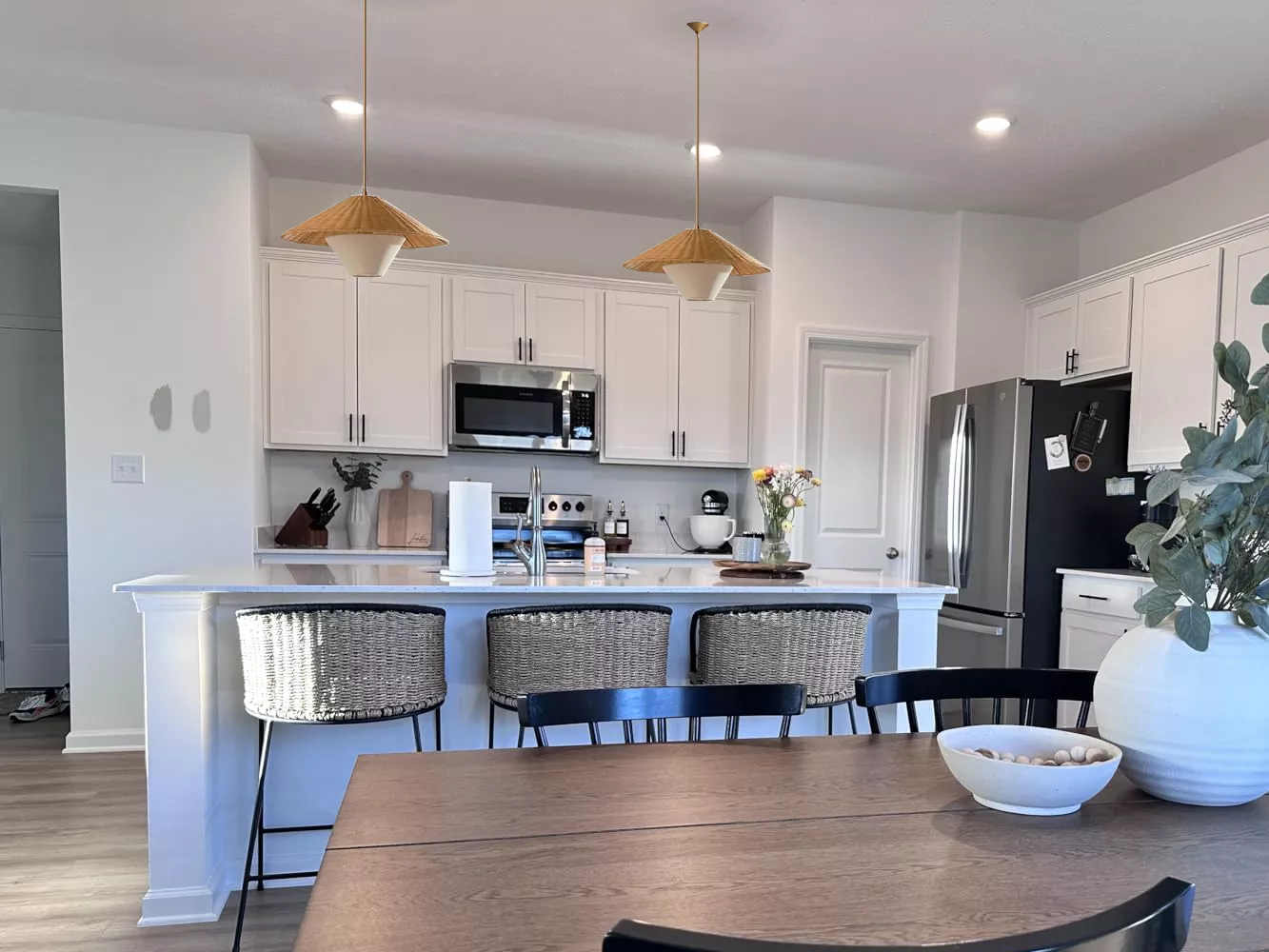This pendant lamp is more than just a lighting fixture; it’s a statement piece that infuses any room with a warm, inviting ambiance. Especially striking in dining areas and living rooms, its handcrafted wicker design offers a cozy, natural feel. Each lamp is distinct, ensuring that your lighting solution is as unique as your space. While it isn’t dimmable, it provides a consistent and inviting light, perfect for creating a serene atmosphere.