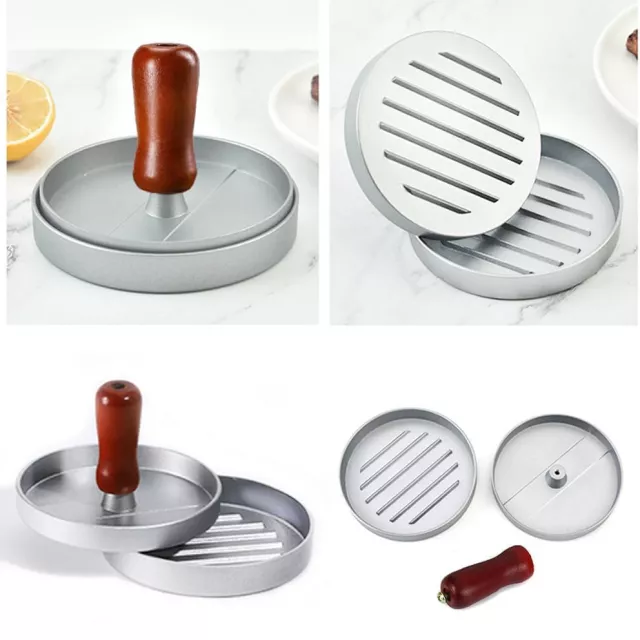 Crafted from high-quality aluminum with a smooth, non-stick coating, this press makes it easy to shape, release, and clean up. The solid wood handle offers a comfortable, slip-free grip that adds a rustic, stylish touch to your kitchen setup. Compact and durable, it’s built to last through countless cookouts and dinners.