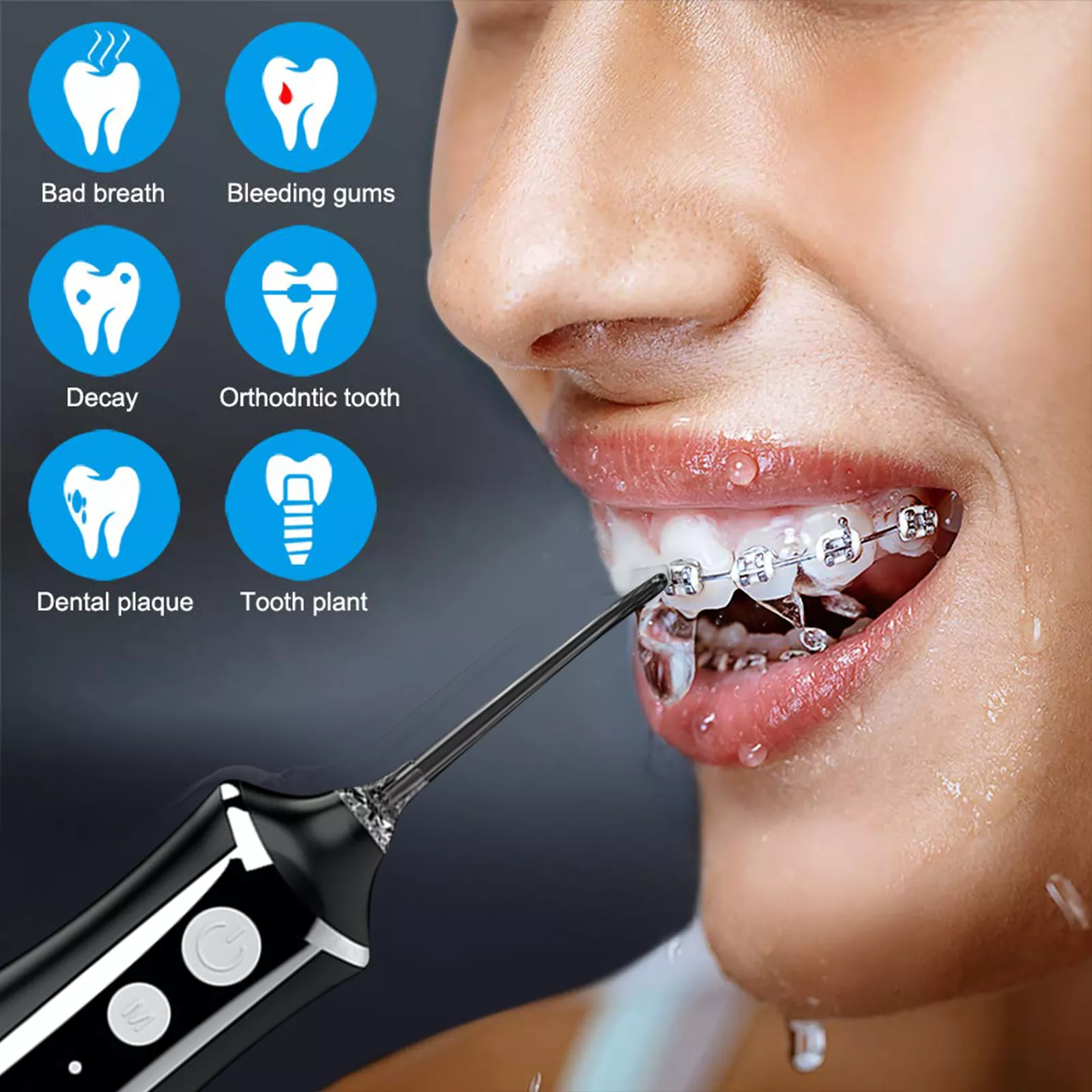 Say goodbye to traditional flossing and hello to a smarter way of cleaning your teeth. This portable cordless water flosser is your ultimate dental care companion for home, travel, or on the go. With powerful pulse technology delivering 1600-1800 water pulses per minute and adjustable pressure settings, it effectively removes up to 99.99% of food debris and plaque—even from hard-to-reach areas. Whether you have braces, implants, sensitive gums, or just want a fresher mouthfeel, this water flosser is built for your needs.