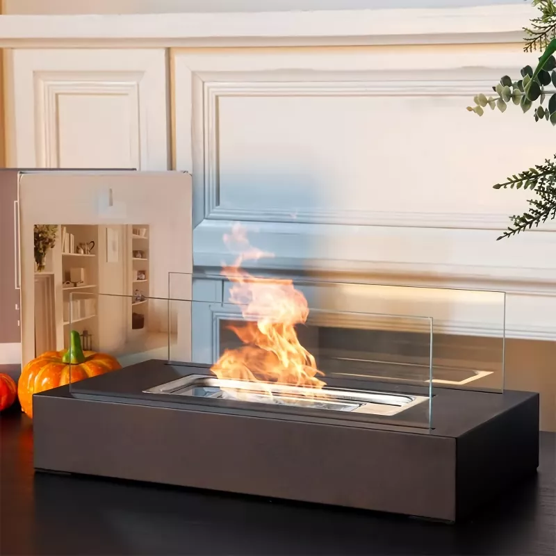 Our ethanol fireplace is distinguished by its ease of use and elegant design. It’s a rectangular bioethanol stove that’s both lightweight and durable, making it perfect for desktops or any room in your home. Its portability ensures you can also bring the warmth outdoors, ideal for gatherings, dinners, or simply relaxing under the stars.