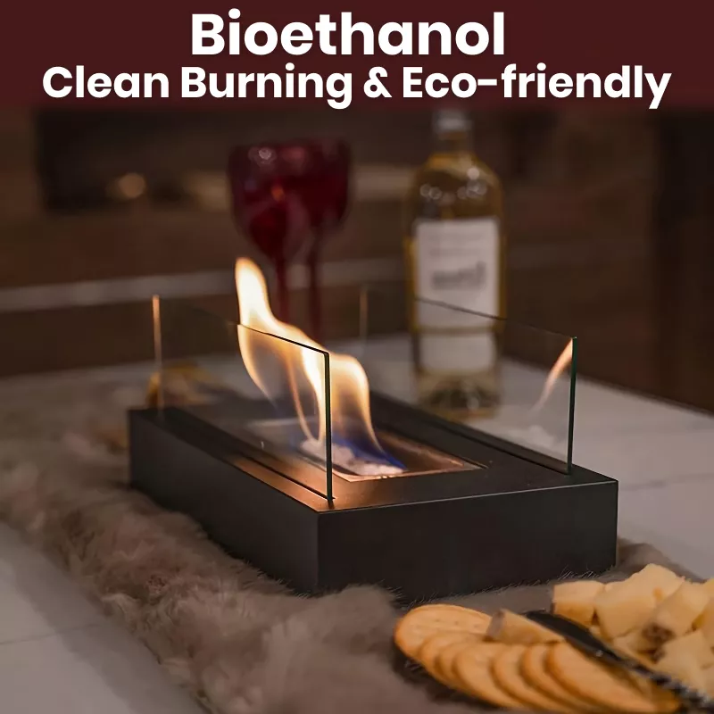 • Environmentally Friendly: Utilizes bioethanol, a renewable energy source that burns clean, leaving no soot or ash.