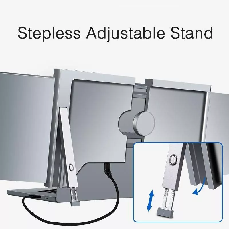 Elevate your work and play with our Tri-Screen Portable Monitor. Specifically designed for those who thrive on multitasking and efficiency, this innovative product extends your laptop’s display with ease. Its 14-inch, 16:10 aspect ratio, and 1920×1200 FHD resolution provide a stunning and seamless visual experience. Ideal for professionals, gamers, and tech enthusiasts, this portable monitor is a game-changer for enhancing productivity and entertainment on the go.