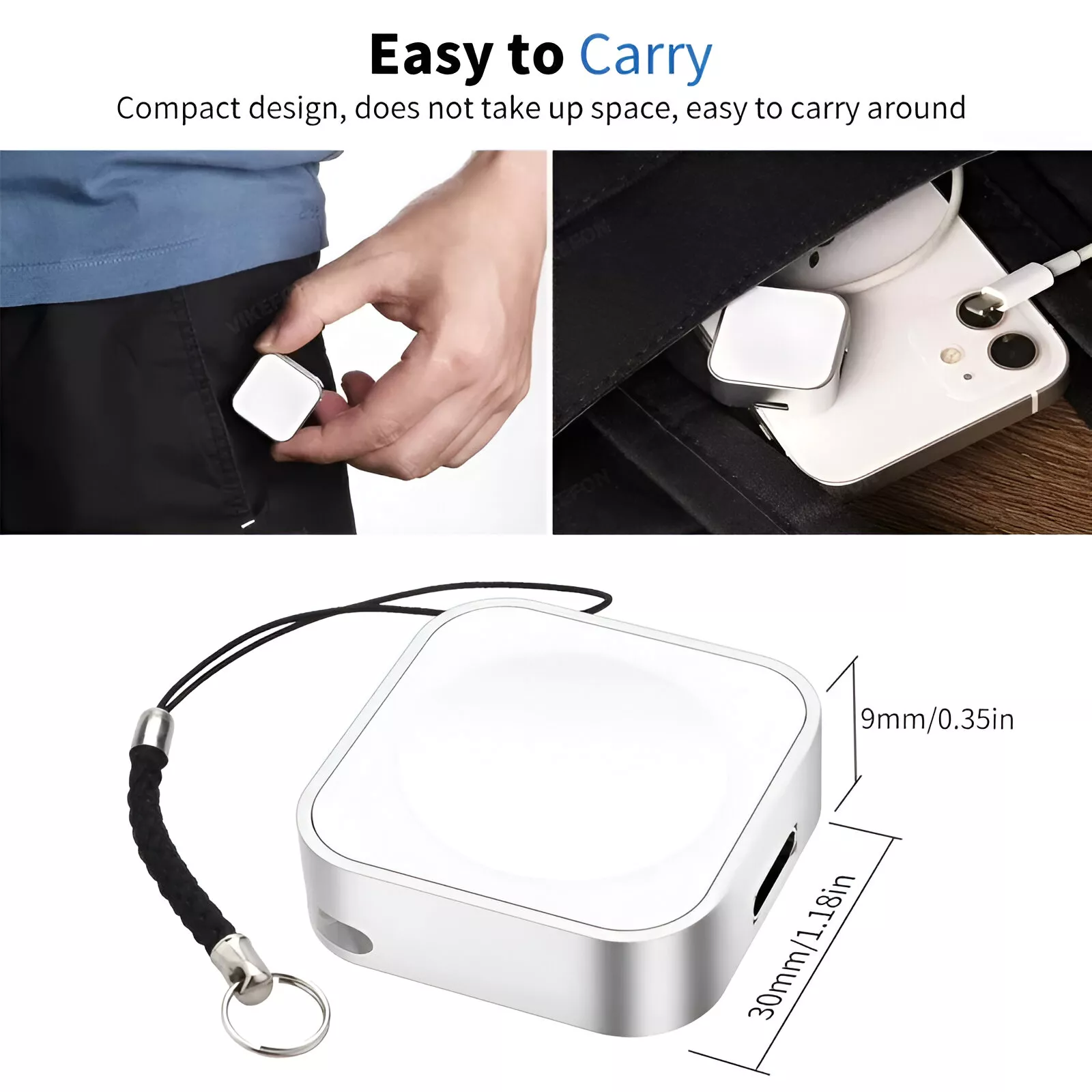 With its built-in magnetic suction module, your watch locks securely in place for a stable and efficient charging experience. The high-quality aluminum alloy shell offers excellent durability, resisting drops and wear while ensuring rapid heat dissipation and safe charging. Small enough to fit in your pocket or bag, this lightweight charger also comes with a removable metal carabiner hook, making it the perfect travel companion.