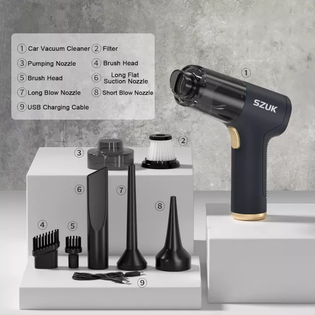 Designed with multiple nozzle attachments, this vacuum effortlessly tackles a variety of cleaning needs—from tight car seats and vents to countertops and upholstery. It also functions as a handheld blower, useful for dust removal and even inflating balloons. Lightweight at just about 1.3 pounds, it’s easy to maneuver and store anywhere.