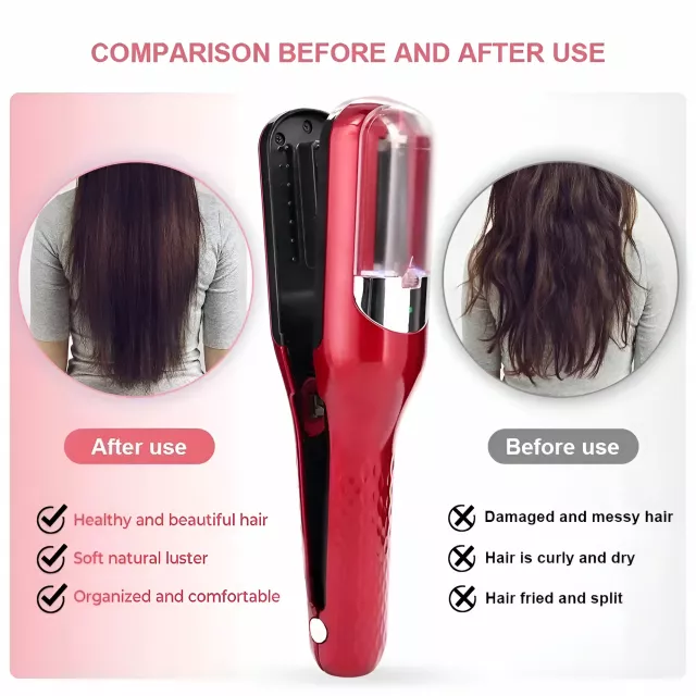 What makes it special? The automatic trimming mechanism ensures only the damaged ends are cut, preserving your hair length and shape. The ergonomic design and cordless freedom let you style your hair wherever you are — no salon appointment needed.