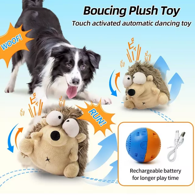 Say goodbye to bored, restless dogs and chewed-up furniture! This rechargeable interactive dog toy is designed to excite, engage, and entertain your furry friend like never before. With motion-activated bouncing, vibrating action, and an irresistible squeaky plush surface, this toy offers endless fun and mental stimulation for dogs of all ages and sizes.