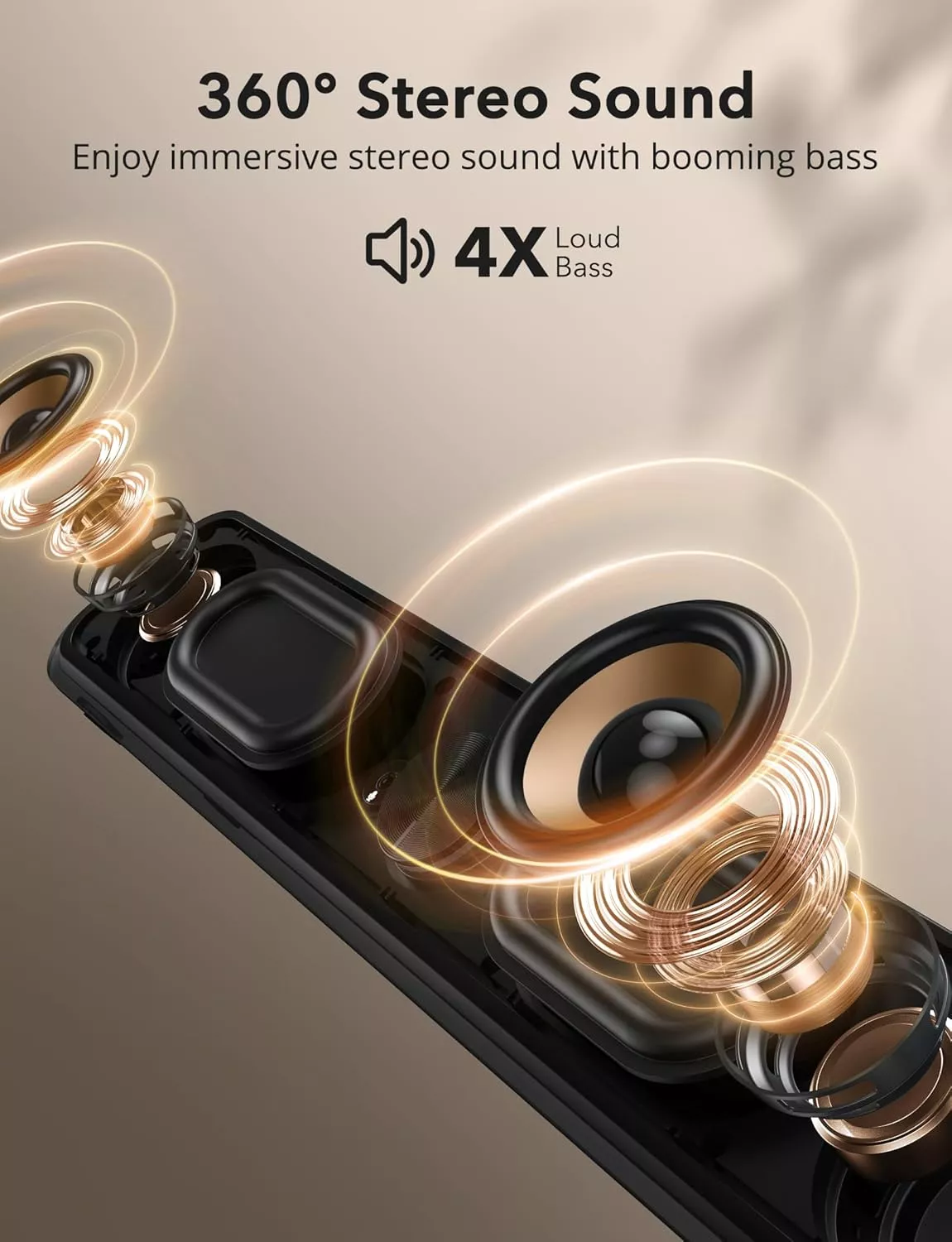 Its compact and lightweight design makes it easy to carry, while its dual magnetic horns and circular diaphragms deliver exceptional clarity and immersive stereo performance. Packed with smart connectivity options like Bluetooth 5.0, USB flash support, TF card input, AUX, FM radio, and even hands-free calling, this sound box does more than just play music – it becomes the center of your sound world.