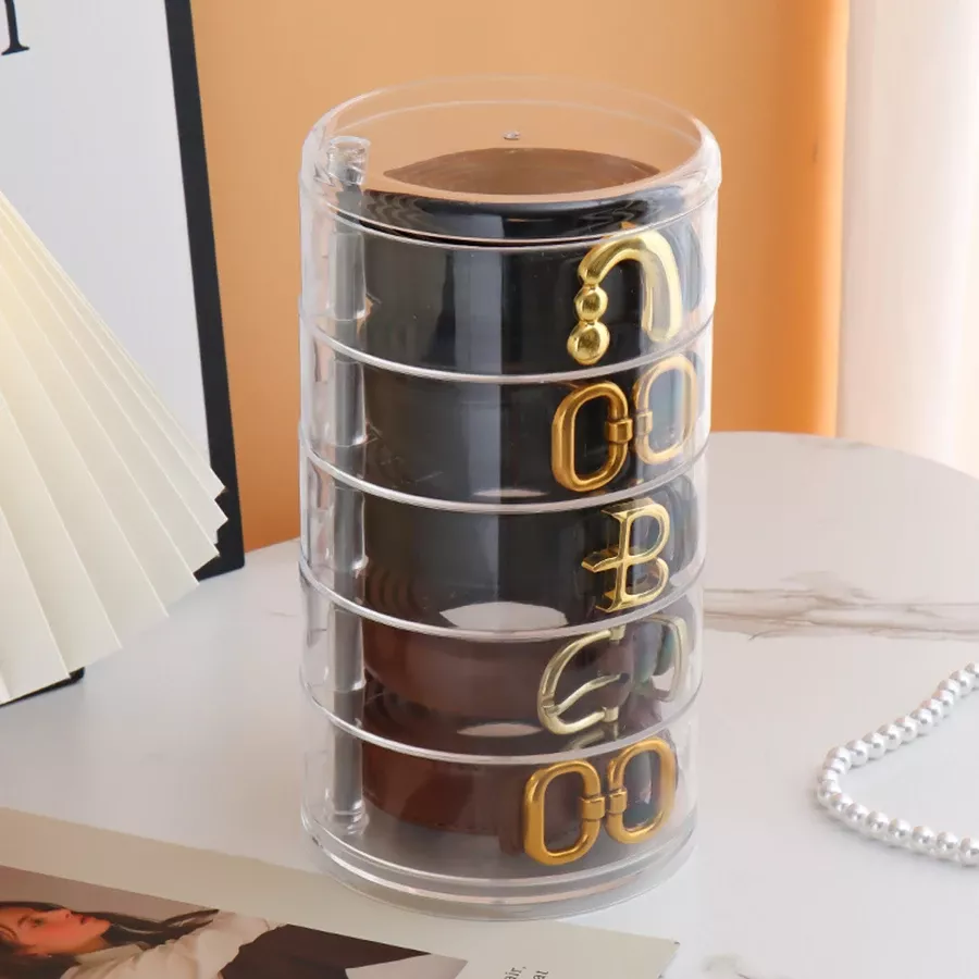 Unlike traditional storage boxes, this multi-layer organizer rotates 360 degrees, making your accessories effortlessly accessible. The transparent design adds a modern, minimalist touch to any space while keeping your favorite belts, jewelry, and necklaces dust-free and neatly displayed. It’s perfect for home use, boutique displays, or anyone who loves to keep their collection as stylishly arranged as their wardrobe.