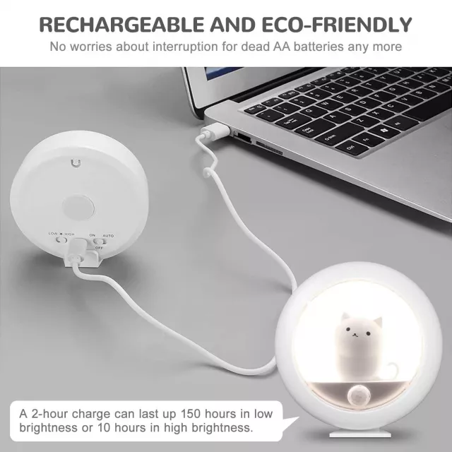 Smart Cat LED Night Light with Motion Sensor – USB Rechargeable Lamp