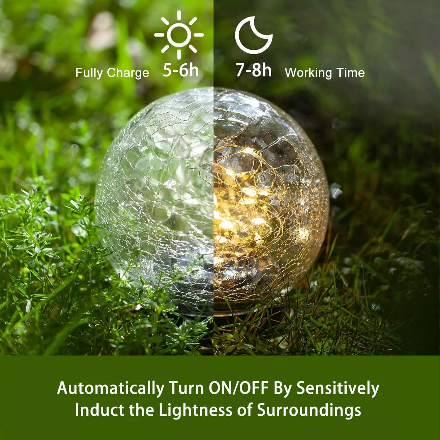 Transform your yard, walkway, or garden into a cozy and enchanting escape with this beautifully designed solar cracked glass ball light. Its thick, cracked glass globe creates a dazzling pattern of soft, warm light, adding elegance and charm to any outdoor space. Whether you’re decorating for the holidays, planning an evening gathering, or just adding some nighttime sparkle to your lawn, this solar-powered lamp is a stunning and effortless way to elevate your landscape.