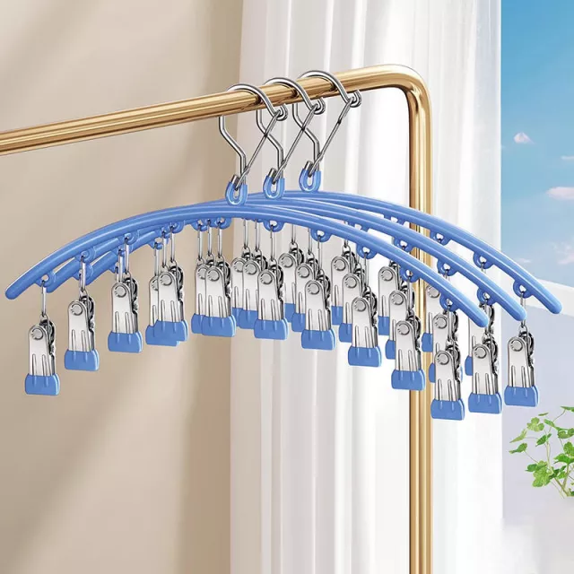 What makes this hanger special? Its curved shape allows for optimal spacing, preventing bulk while preserving the shape of your clothing. The 10 individual clips are strong yet easy to use, providing a secure grip without damaging fabrics — ideal for both thick yoga pants and lightweight leggings.