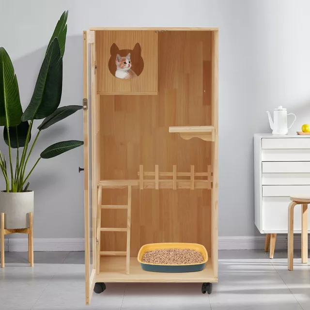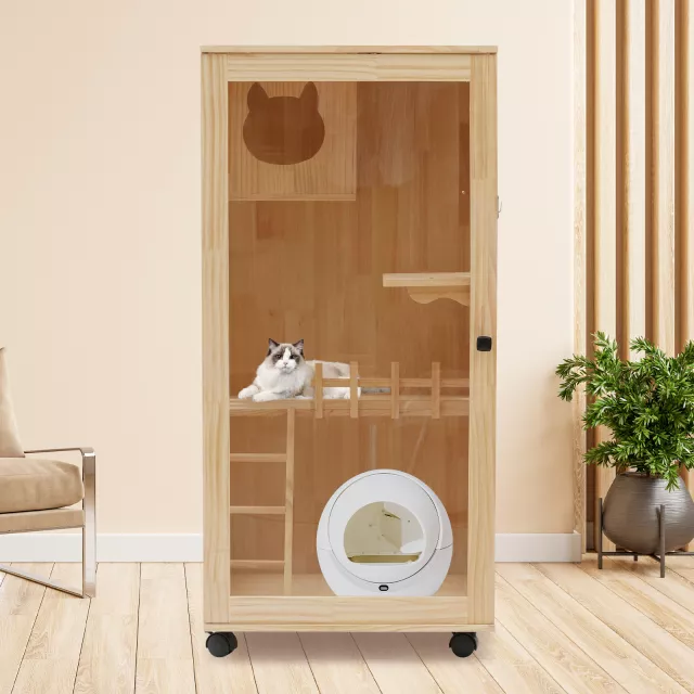 Unlike ordinary cat beds or flimsy shelters, this cat house offers a combination of strength, beauty, and functionality. Its natural wood finish complements your home, while the smart features like the LED light and movable wheels make everyday use easy and hassle-free. Give your cat the comfort they deserve and enjoy the peace of mind knowing they have a safe, beautiful place to call their own.