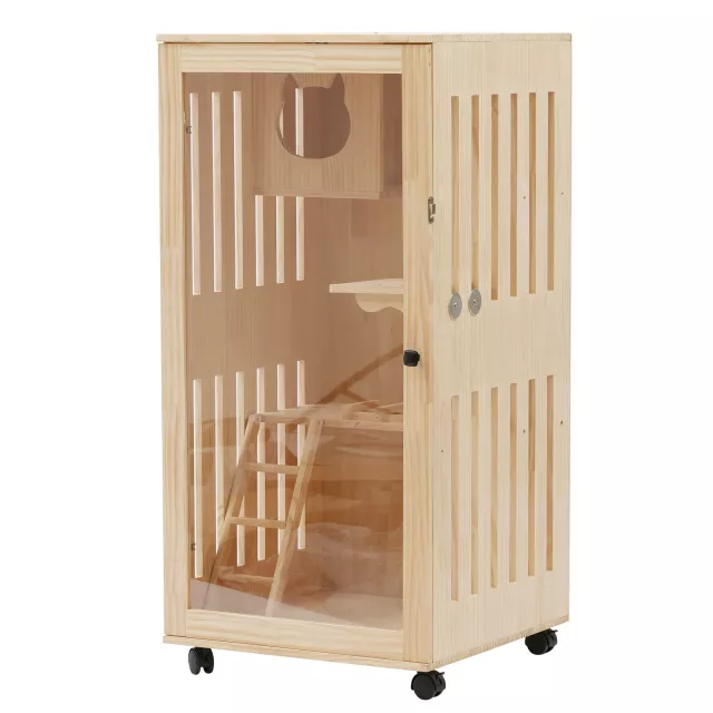 Crafted from high-quality New Zealand pine wood, it boasts a sturdy and safe construction. The thickened 0.6-inch wooden panels ensure durability and resistance to cracking, keeping your cat safe and comfortable inside. Its natural wood texture and simple rectangular shape blend seamlessly with any home décor, making it not just a pet accessory but a charming addition to your living space.