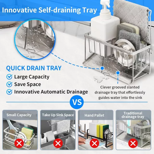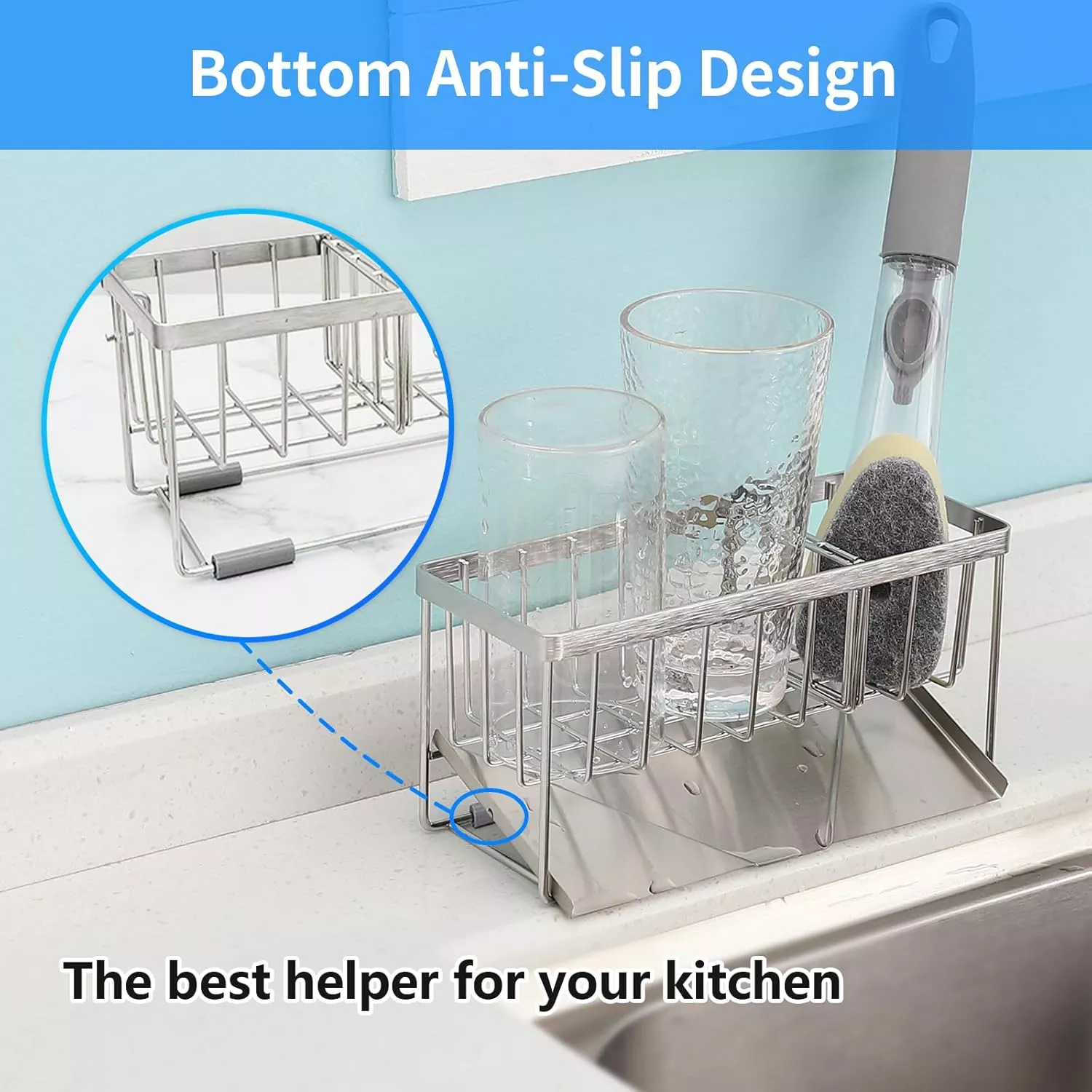 What makes this sink sponge caddy special is its blend of modern design and practical utility. Unlike plastic alternatives that stain, warp, or collect grime, this stainless steel organizer remains sleek and clean with minimal effort. The polished base keeps it firmly in place, while the removable tray prevents puddles from forming under your cleaning tools. It’s a simple addition to your kitchen—but one that makes a big difference.