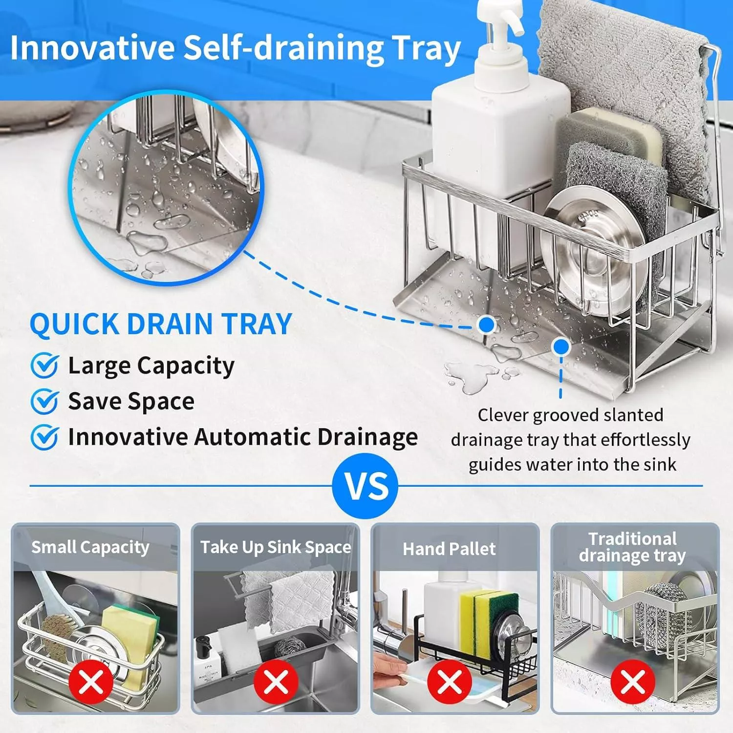Say goodbye to messy countertops and wet sponges with this premium Stainless Steel Sink Sponge Holder. Crafted from high-quality 304 stainless steel, this organizer is built to last—resistant to rust, water damage, and deformation. It’s the perfect solution for keeping your sink area clean, clutter-free, and hygienic. Whether you’re washing dishes after dinner or tidying up during the day, this sponge holder brings both function and style to your kitchen routine.