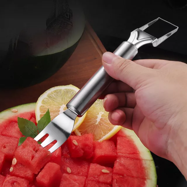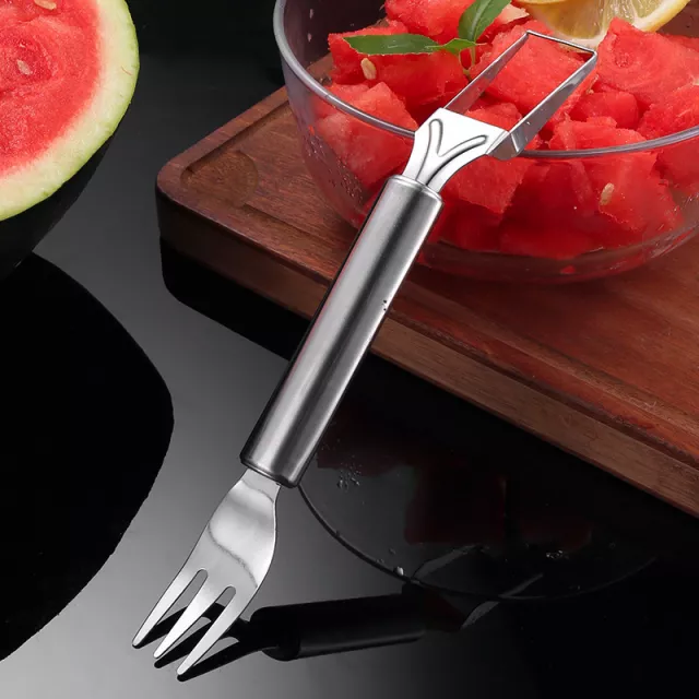Crafted from high-quality stainless steel, this slicer offers strength and durability while resisting rust and stains. Its sharp blades glide effortlessly through watermelon and other melons, ensuring clean cuts every time. The ergonomic handle provides a comfortable grip, making slicing safer and less tiring. The double-ended fork serves as a handy tool for picking up fruit pieces, while the fruit pulp digger allows you to scoop out the flesh cleanly and efficiently. This all-in-one tool is perfect for anyone who enjoys fresh fruit but wants to save time and reduce waste.