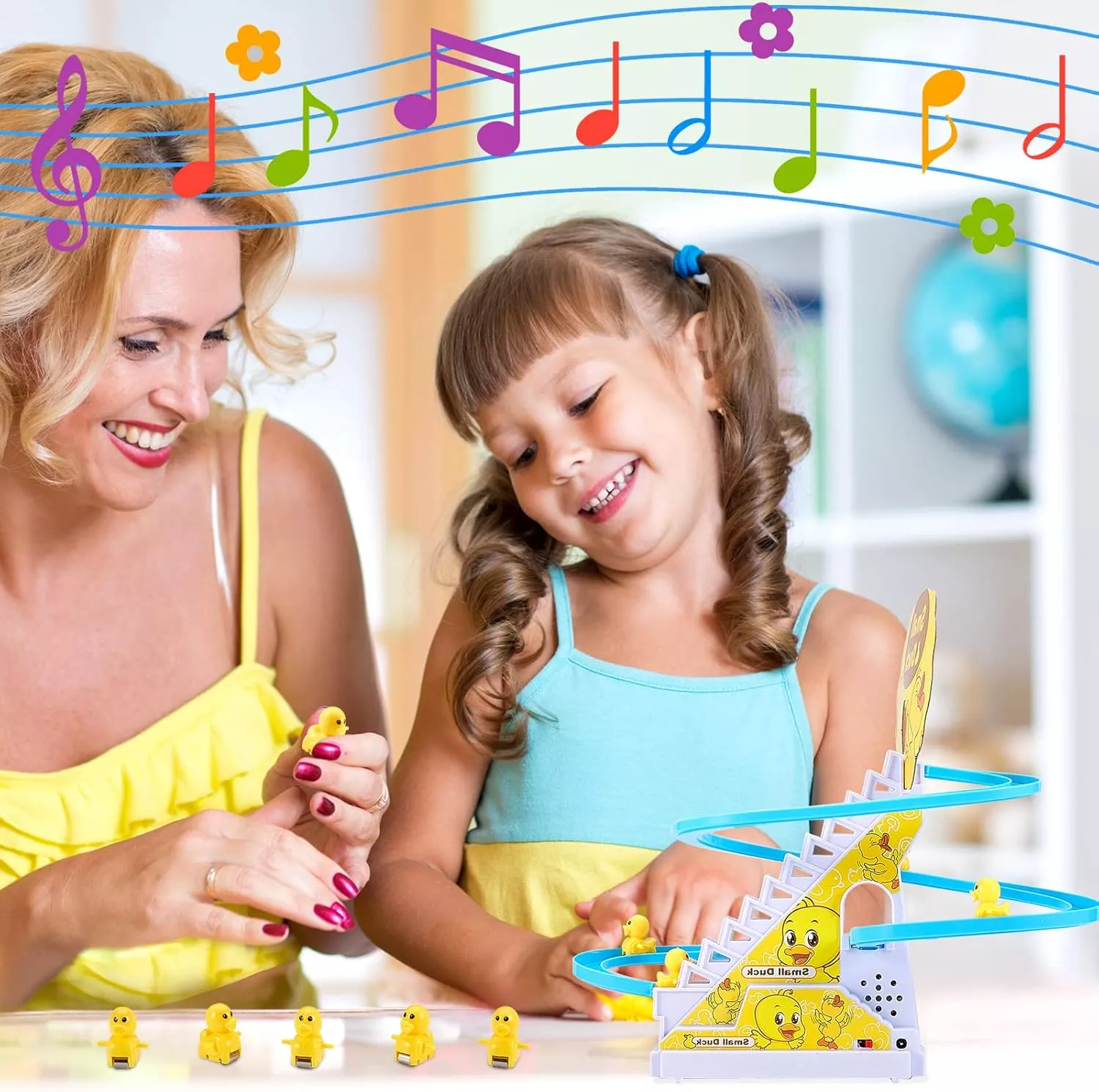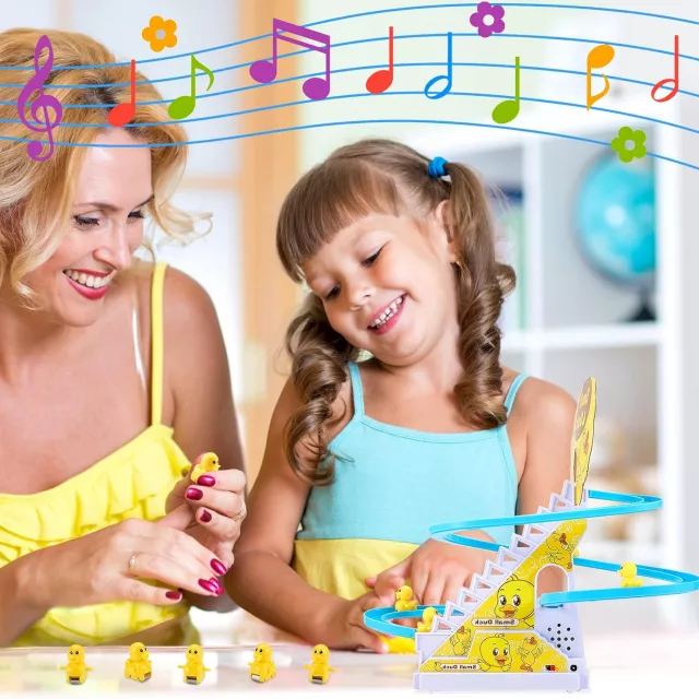 Turn playtime into a delightful learning adventure with the Stair-Climbing Musical Duck Toy — the perfect combination of entertainment and education for curious little minds. Watch as colorful ducks waddle up the stairs and slide down the track in an endless loop, all while cheerful music plays and lights flash in sync. This mesmerizing toy keeps kids engaged for hours, stimulating both their imagination and growing minds.