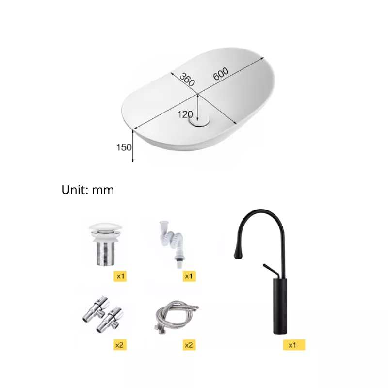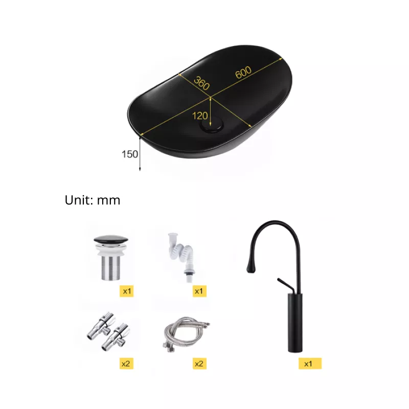 Our ceramic wash basin not only serves its practical purpose but also adds a statement piece to your bathroom decor. The sleek black basin with a modern oval shape exudes elegance and style, making it a focal point of your space.