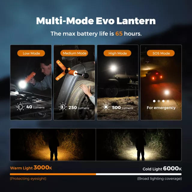 This electric lantern packs serious performance into a durable, travel-ready design. With three lighting modes — low, medium, and high — you can easily adapt the brightness to suit your environment. Whether you need soft, warm light for a tent or crisp, cold light to illuminate a work area, this lantern delivers. Its telescopic body extends from just 10.2 inches to a full 36.6 inches, while the strong magnetic base allows hands-free use on metal surfaces — ideal for setting up camp or tackling nighttime tasks.