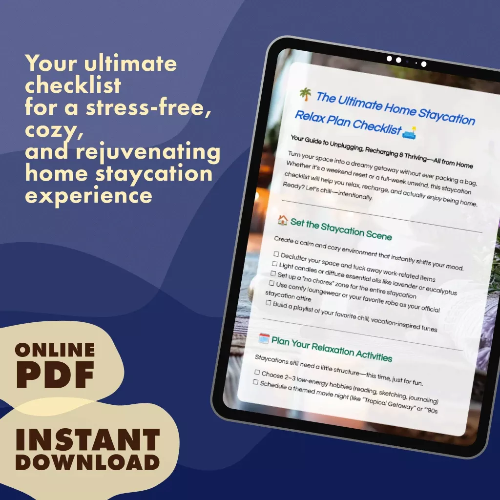 This digital checklist is perfect for busy professionals, parents needing a reset, or anyone craving a restful break without traveling. If you’ve ever wanted a structured yet flexible way to enjoy staying home, this is your must-have guide.