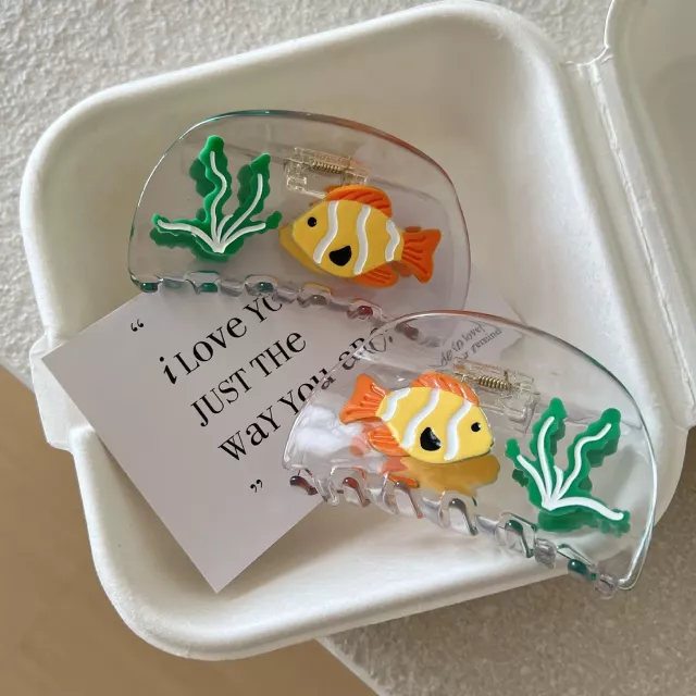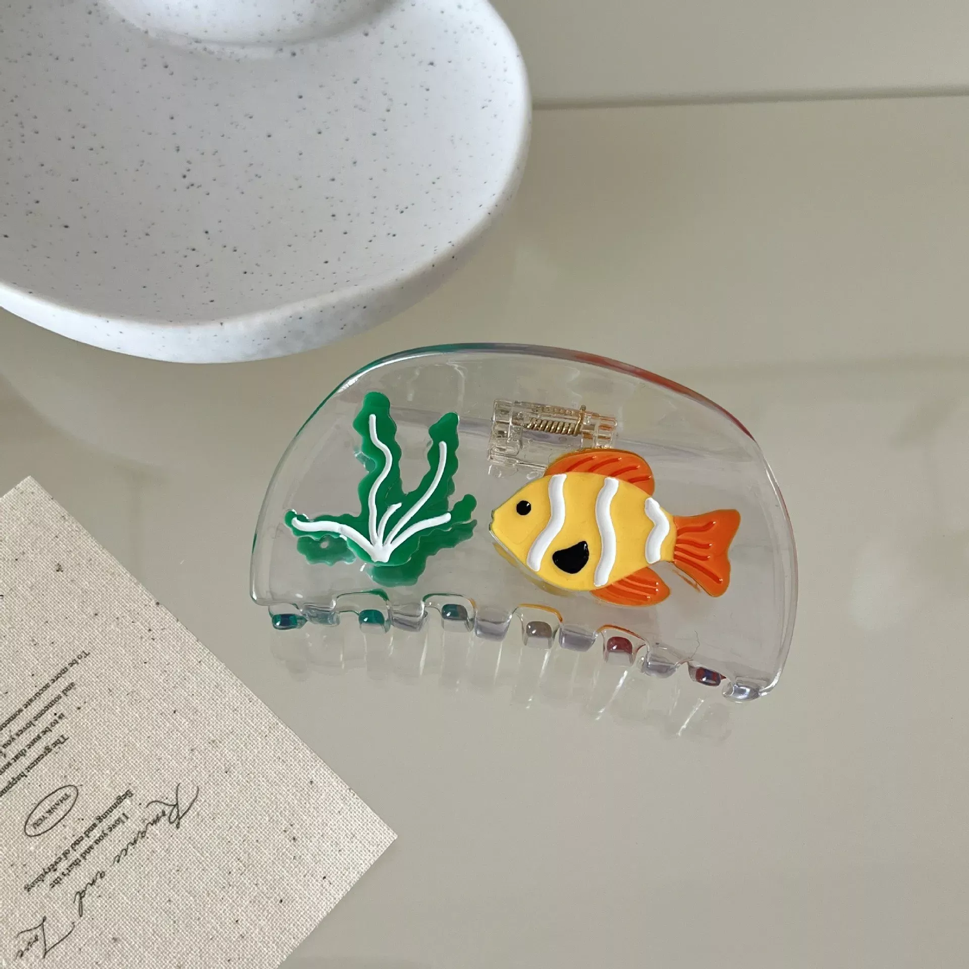 Elevate your everyday hairstyle with a touch of the sea. This Transparent Seaweed Goldfish Hair Claw Clip is where modern fashion meets whimsical ocean vibes. Designed for women and girls who love to express their personality through style, this acetate hair claw is as charming as it is practical. With its unique seaweed and goldfish-inspired design, this clip is more than just a hair accessory—it’s a statement piece.