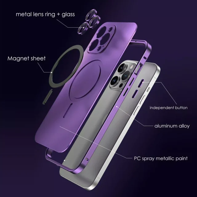 Elevate your iPhone’s style and protection with our Ultra-Protective Magnetic Metal Frame Case. This case offers a perfect blend of luxury and functionality. Its metal aluminum alloy frame and PC metallic paint back panel impart a high-end, luxurious feel, while ensuring robust protection. Whether it’s for everyday use or special occasions, your iPhone will stand out with an enhanced, elegant look.