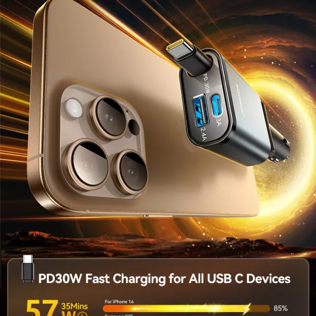 Meet the ultimate space-saving charging solution for your car — the ultra-slim 57W retractable car charger designed for fast, hassle-free charging wherever the road takes you. With a sleek, compact build that fits tight car spaces, this charger delivers powerful performance without cluttering your dashboard. Whether you’re commuting, on a family road trip, or managing long-haul drives, this car charger keeps your devices fully charged and your car interior neat and organized.