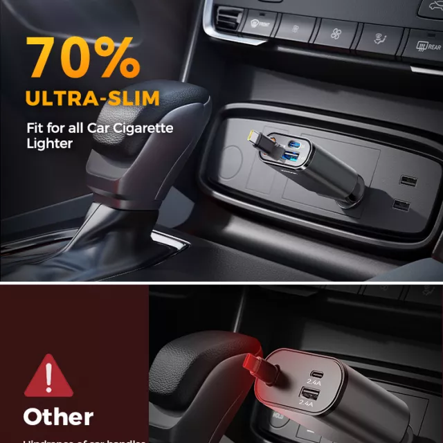 Forget bulky chargers that block gear shifts or get in the way. This ultra-compact charger measures just 5.11 x 1.77 x 0.88 inches, making it ideal for narrow cigarette lighter slots, trucks, or older vehicles with limited space. Its retractable cable extends up to 31.5 inches, giving you flexibility without messy cords. Plus, the 180° adjustable head ensures a perfect fit and stable charging, even on rough roads.