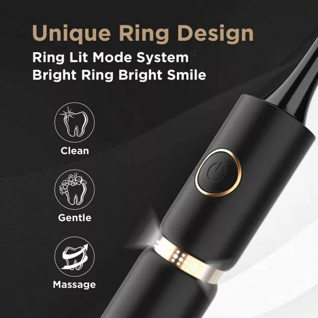 Unlike ordinary electric toothbrushes, this model features a hidden display system that keeps the handle free from water residue and bacteria buildup. It’s crafted with a gold-tone accent ring that adds a touch of elegance, making it a standout on any bathroom counter. Designed for both daily use and travel, the included premium travel case safely stores your toothbrush and extra heads, so you can maintain your oral hygiene wherever life takes you.