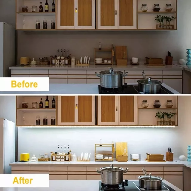 Gone are the days of fumbling for a switch in the dark or with messy hands. Thanks to a built-in hand sweep sensor, this LED light strip activates with a simple wave. The detection range of 1 to 2.5 inches lets you switch it on or off with a quick motion, making it ideal for under-cabinet areas, closets, wardrobes, and stairways—especially when your hands are full or wet.