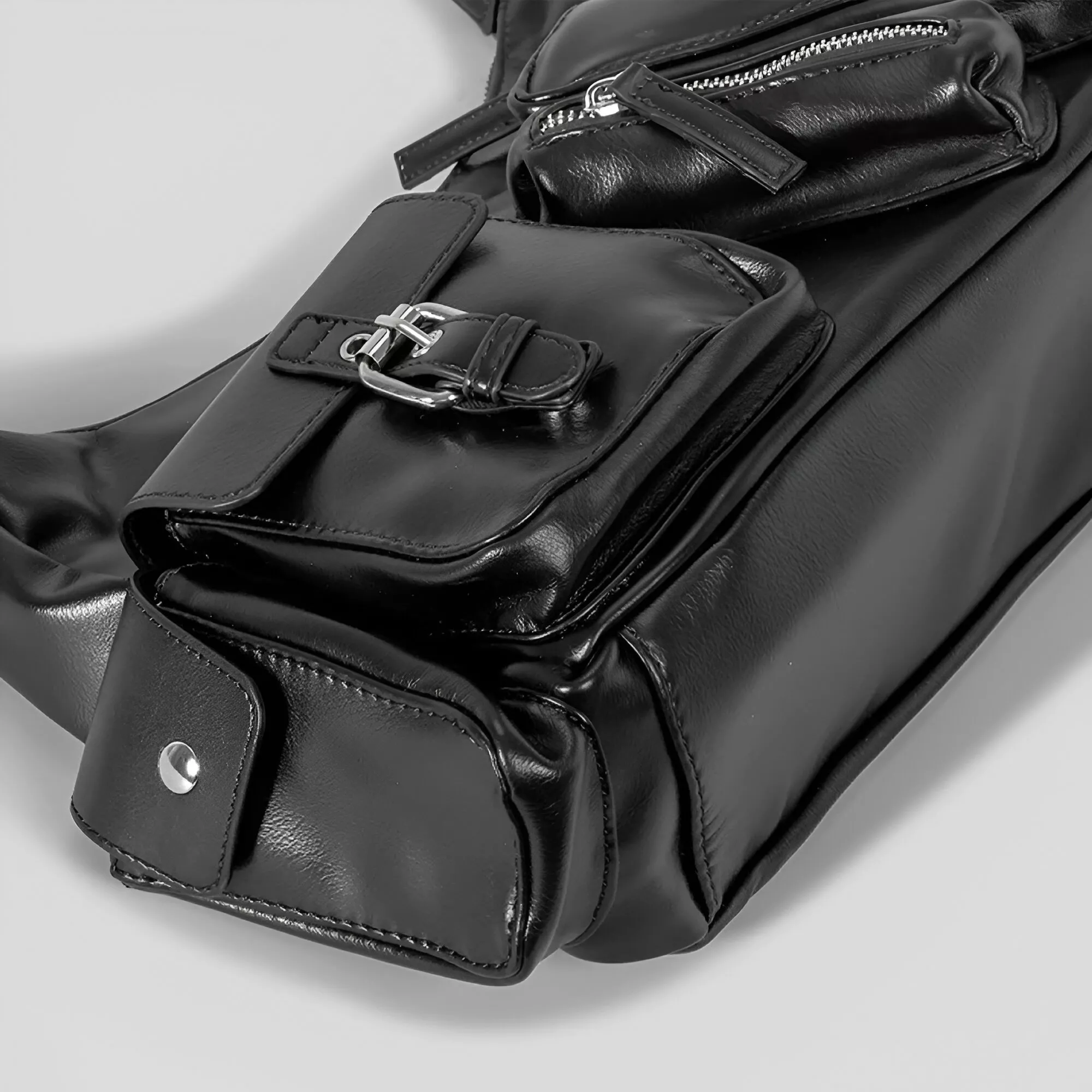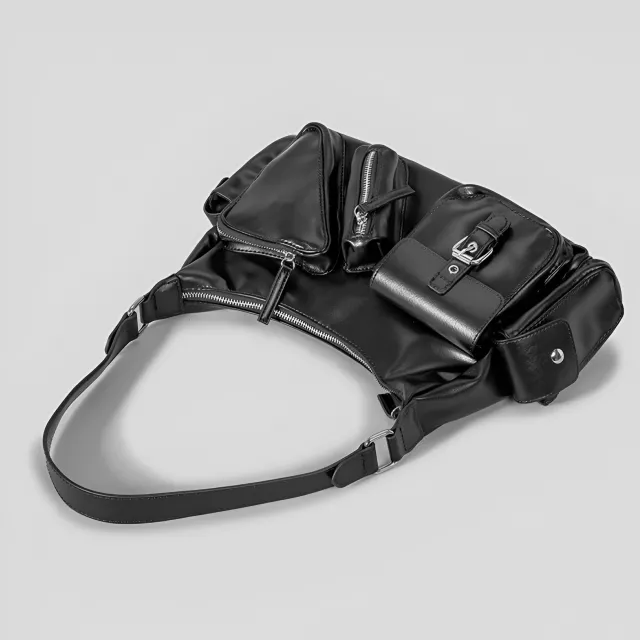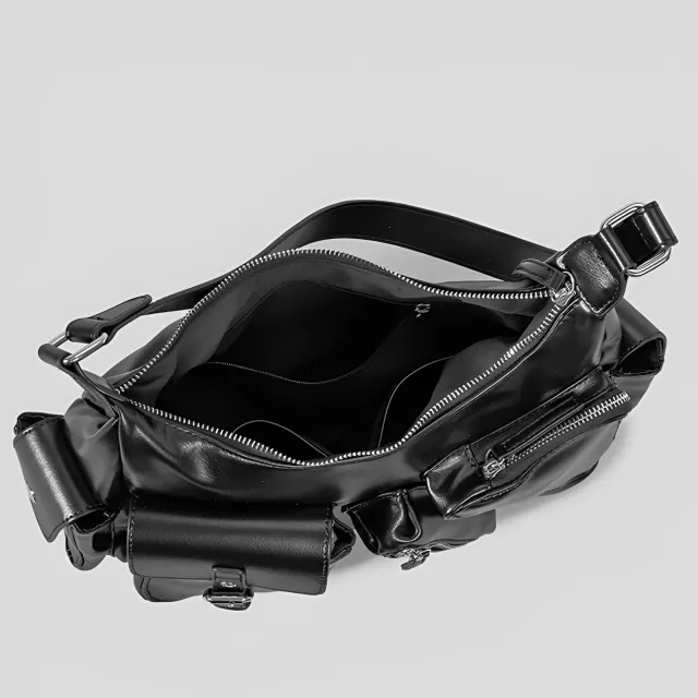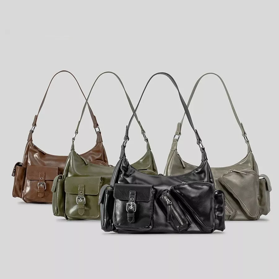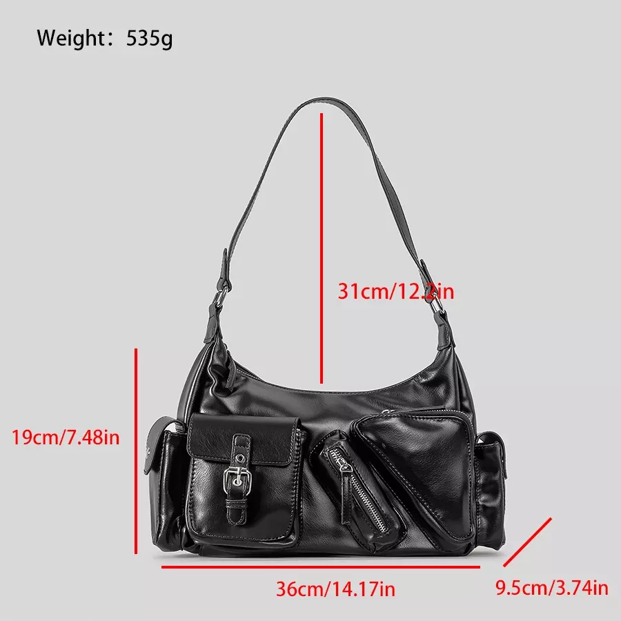 Vintage PU Shoulder Motorcycle Bag with Multi Pockets – Retro Underarm Tote