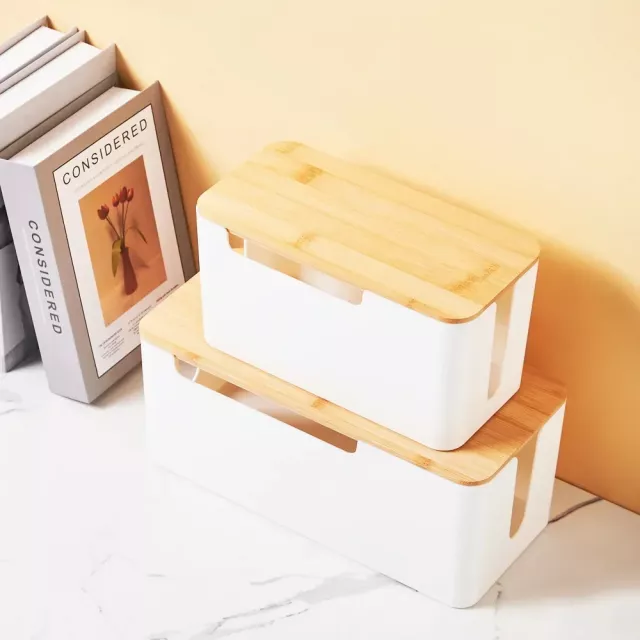 Crafted from a combination of high-quality wood and durable plastic, this storage box offers both style and strength. It’s available in two sizes — 9.4 x 4.6 x 4.7 inches and 12.2 x 5.5 x 5.1 inches — so you can choose the right fit for your needs. Whether you use it at home, in the office, or in a shared workspace, this box helps keep your cables tucked away safely and your power strips dust-free.